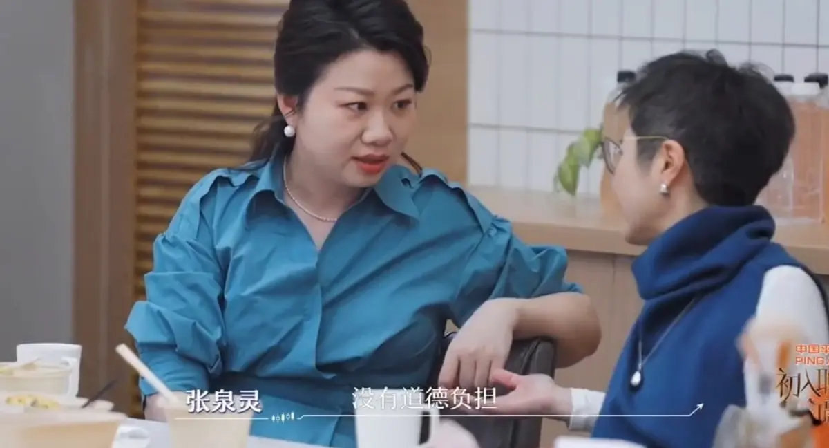 紧接着镜头一转,张泉灵又向刘女士抛出了一个极具深度的话题。